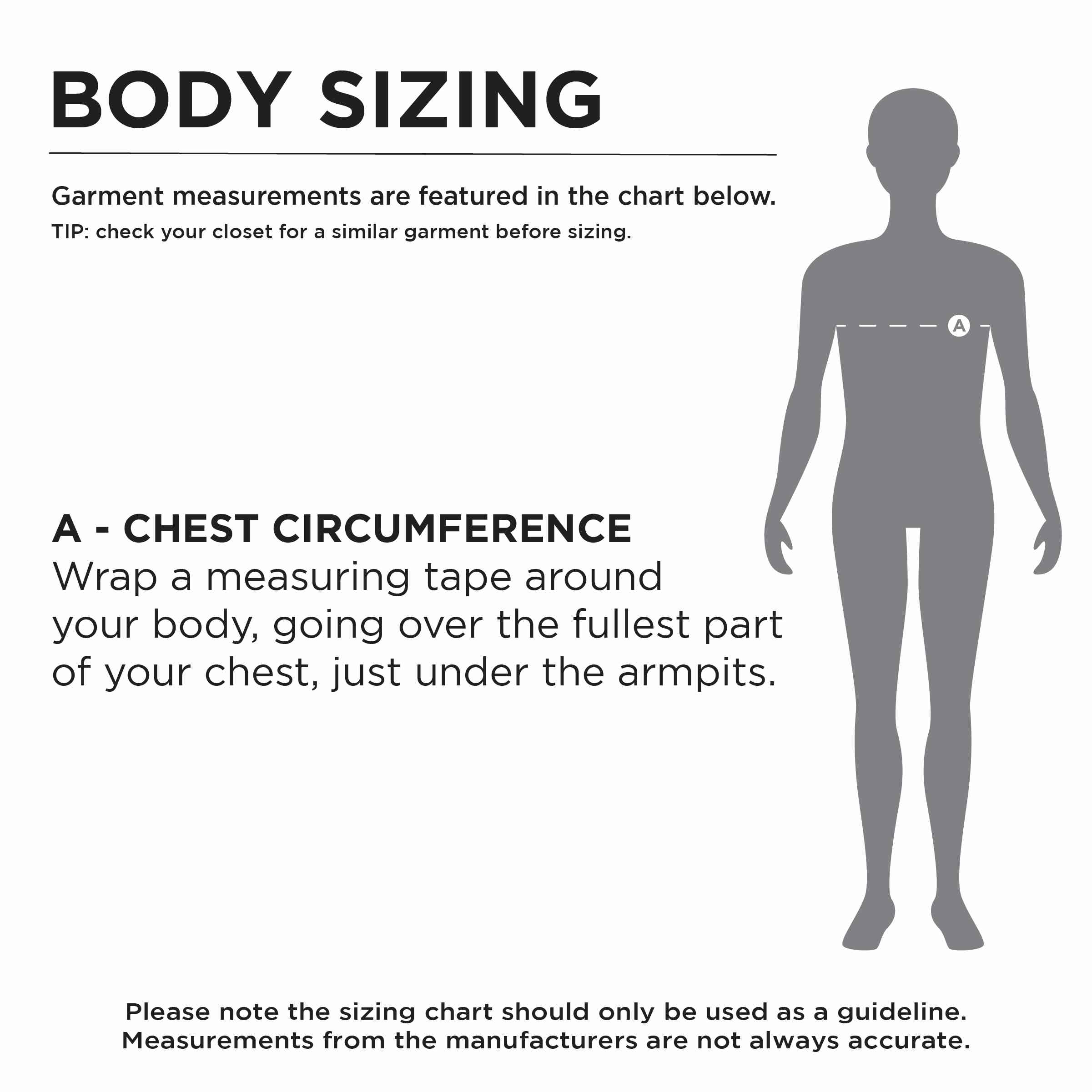 | Chest | 34 - 37 | 37 - 41 | 41 - 44 | 44 - 48 | 48 - 52 | 52 - 56 | 56 - 60 |